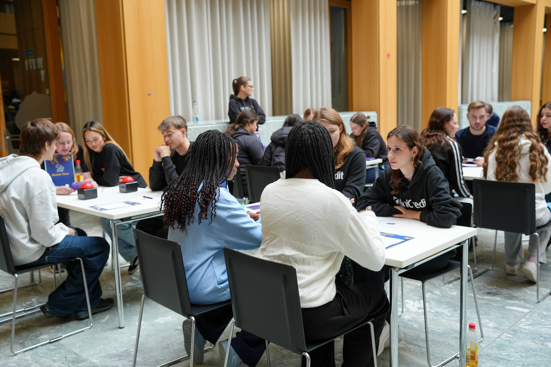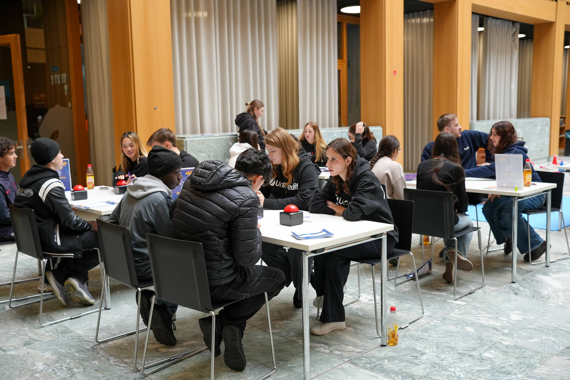 Planmäßig halten sich alle Schüler/innen bis zu 2,5 Stunden auf dem Event auf. Durch das rollierende System befinden sich zeitgleich 60 Jugendliche im Briefingraum, 60 auf den Spielflächen und wiederum 60 in der Unternehmenslounge .