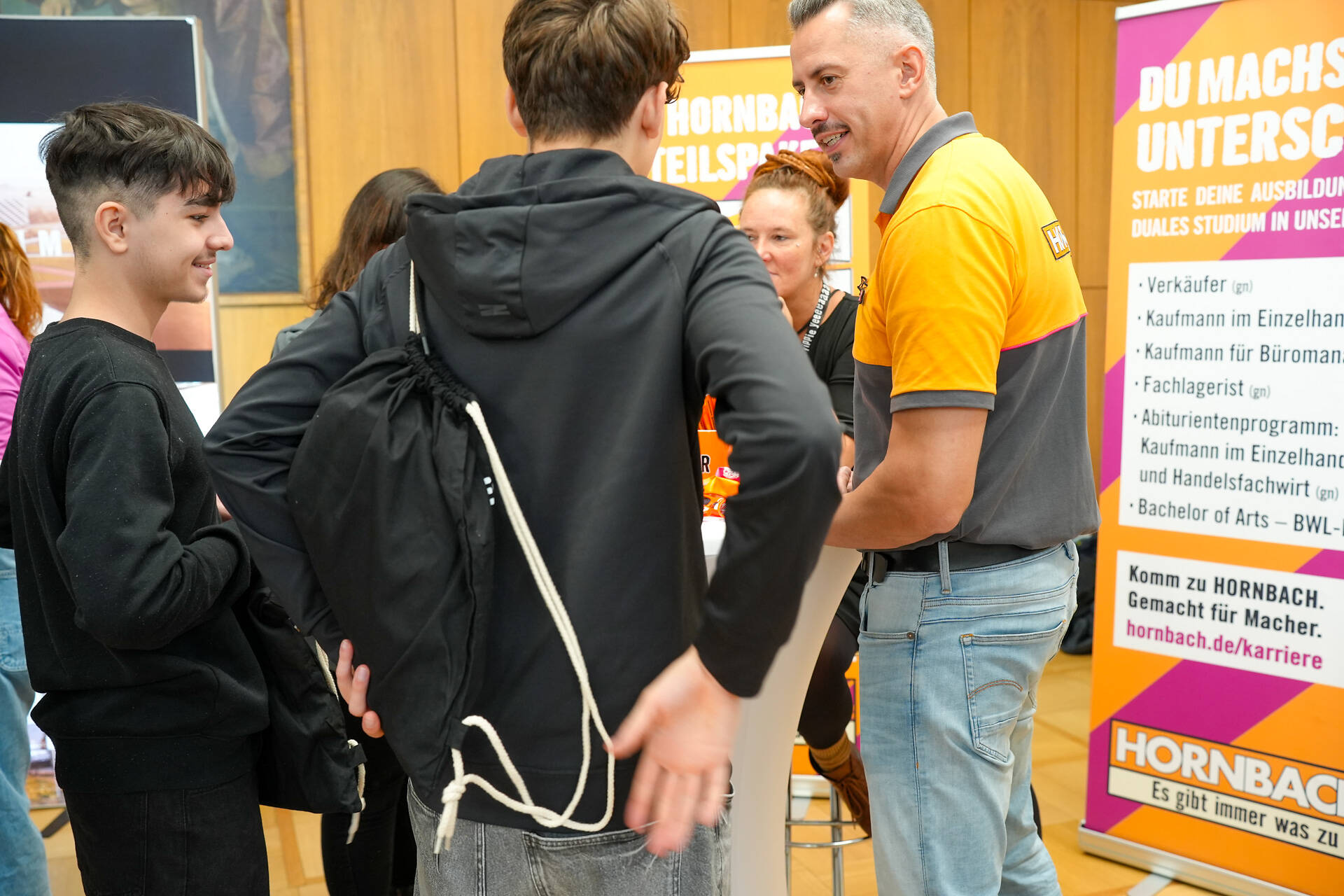 Weitere Highlights in der Unternehmenslounge sind die Jobwall (Aushang ihrer freien Ausbildungsplätze) und das Berufswahl-Speedcoaching.