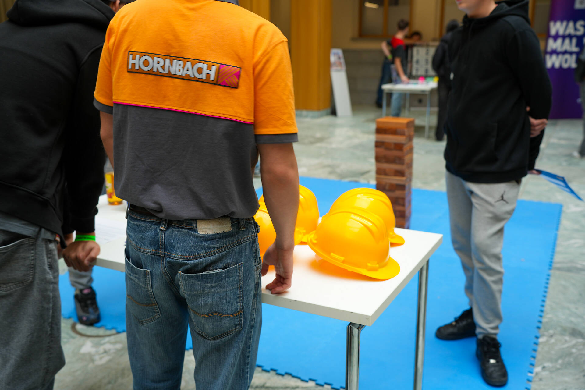 So ist sichergestellt, dass zu jeder Zeit an allen Stationen Betrieb herrscht und niemand warten muss. Neben den Dialogen während der Spiele haben Ihre Azubis die Möglichkeit, Infomaterial zu den jeweiligen Ausbildungsmöglichkeiten und kleine Werbegeschenke an die Teilnehmer auszugeben.