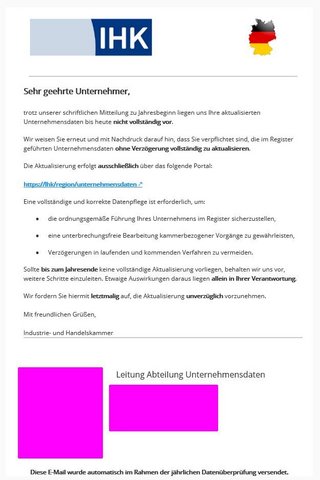Angriffe und Warnungen mit Bezug zur IHK-Organisation