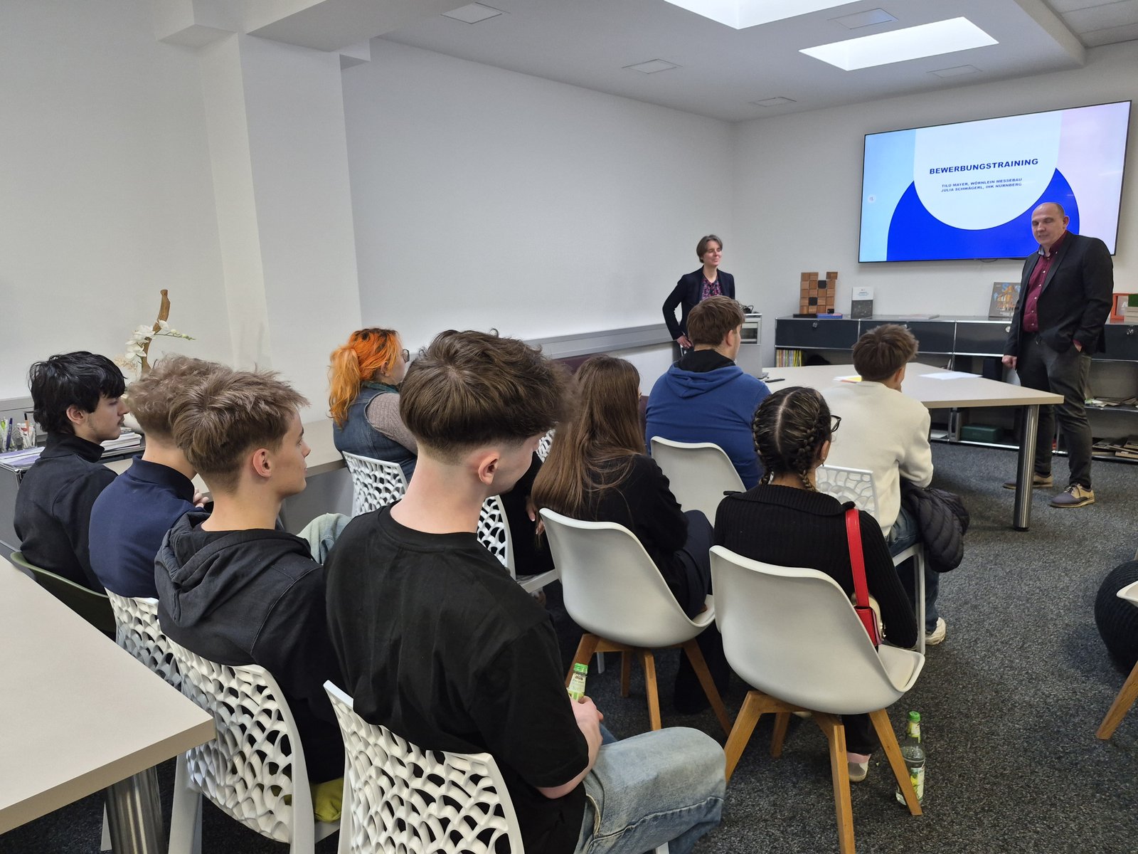 Den Auftakt machte am 10. März die Klassengemeinschaft aus Nürnberg/Nürnberger Land bei Siemens zu dem Thema „Innovationen in der Region“. Weiter ging es am 11. März für die Klassengemeinschaft der FOS und BOS bei der Messebau Wörnlein GmbH, ebenfalls mit dem Schwerpunkt „Innovationen in der Region“. Am 18. März durfte die Klassengemeinschaft Nürnberg zu Gast beim 1. FC Nürnberg das Thema „Stärken entdecken – Herausforderungen nutzen“ behandeln. Einen kurzen Einblick in das Lehrmodul sehen Sie unten. Mit dabei war die Sportreferentin Claudia Trinkel der Stadt Nürnberg. In Westmittelfranken waren Schülerinnen und Schüler am 19. März beim Franken Fernsehen und beschäftigte sich mit dem Thema „Regionale und globale Wirtschaft“. Die Klassengemeinschaft Fürth durfte sich in unserer IHK-Geschäftsstelle Fürth dem Thema „Unternehmertum und Gründung“ widmen.