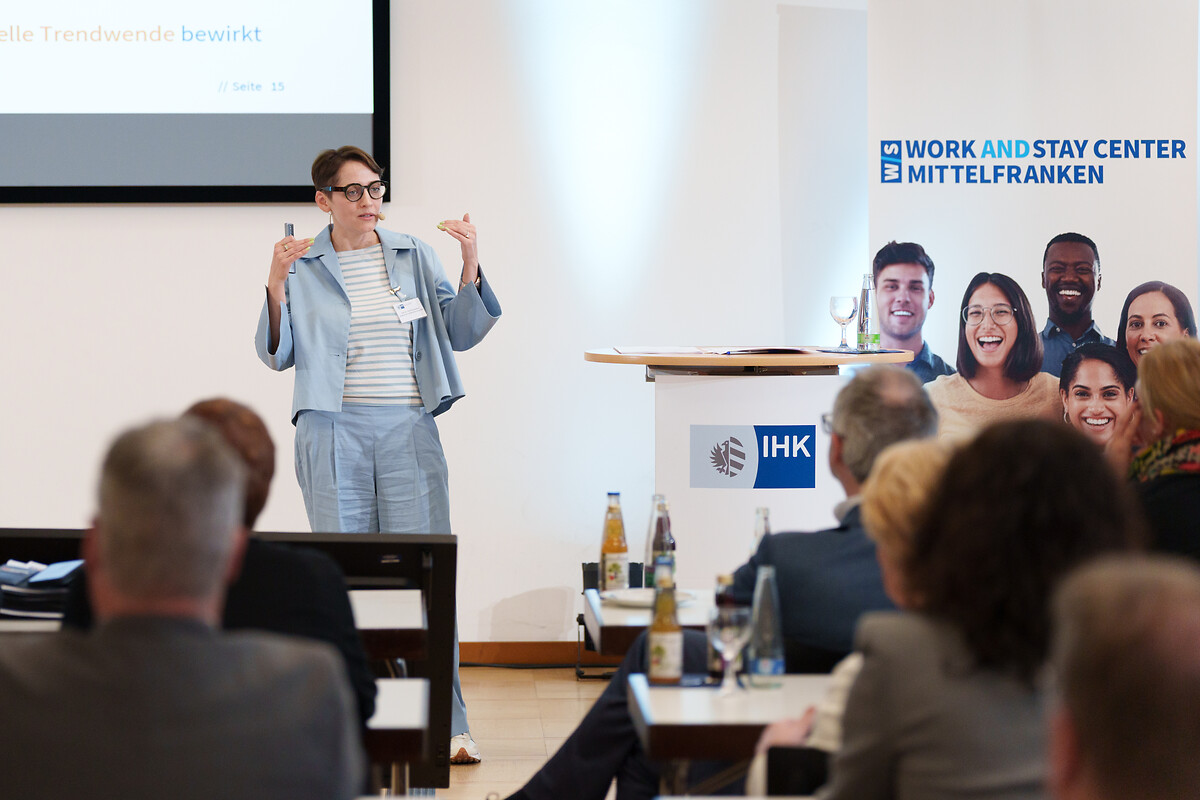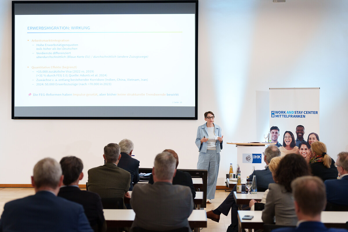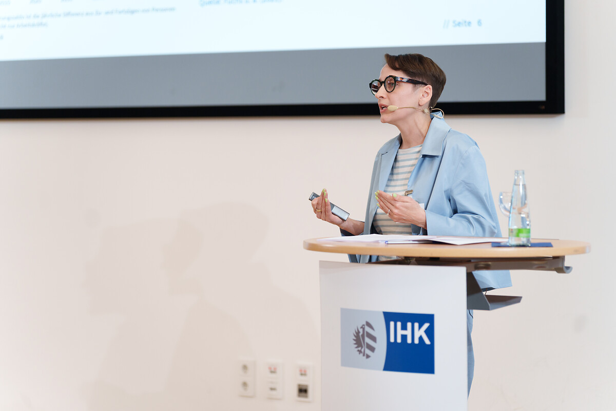 In unserer Veranstaltungsreihe IHK trifft Wissenschaft durften wir am 24. März Prof. Dr. Yuliya Kosyakova vom Institut für Arbeitsmarkt- und Berufsforschung (IAB) begrüßen. In ihrem Vortrag „Internationale Fachkräfte langfristig halten – wie gelingt uns das?“ zeigte sie praxisnah und klar auf, wie internationale Fachkräfte nicht nur gewonnen, sondern auch erfolgreich integriert und langfristig gehalten werden können – ein Thema, das angesichts des Fachkräftemangels aktueller ist denn je.
