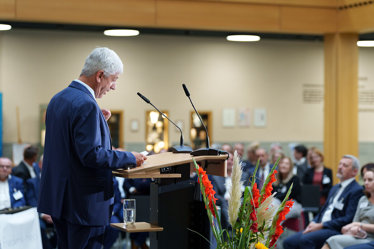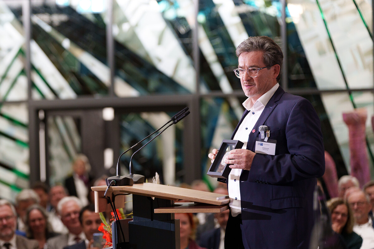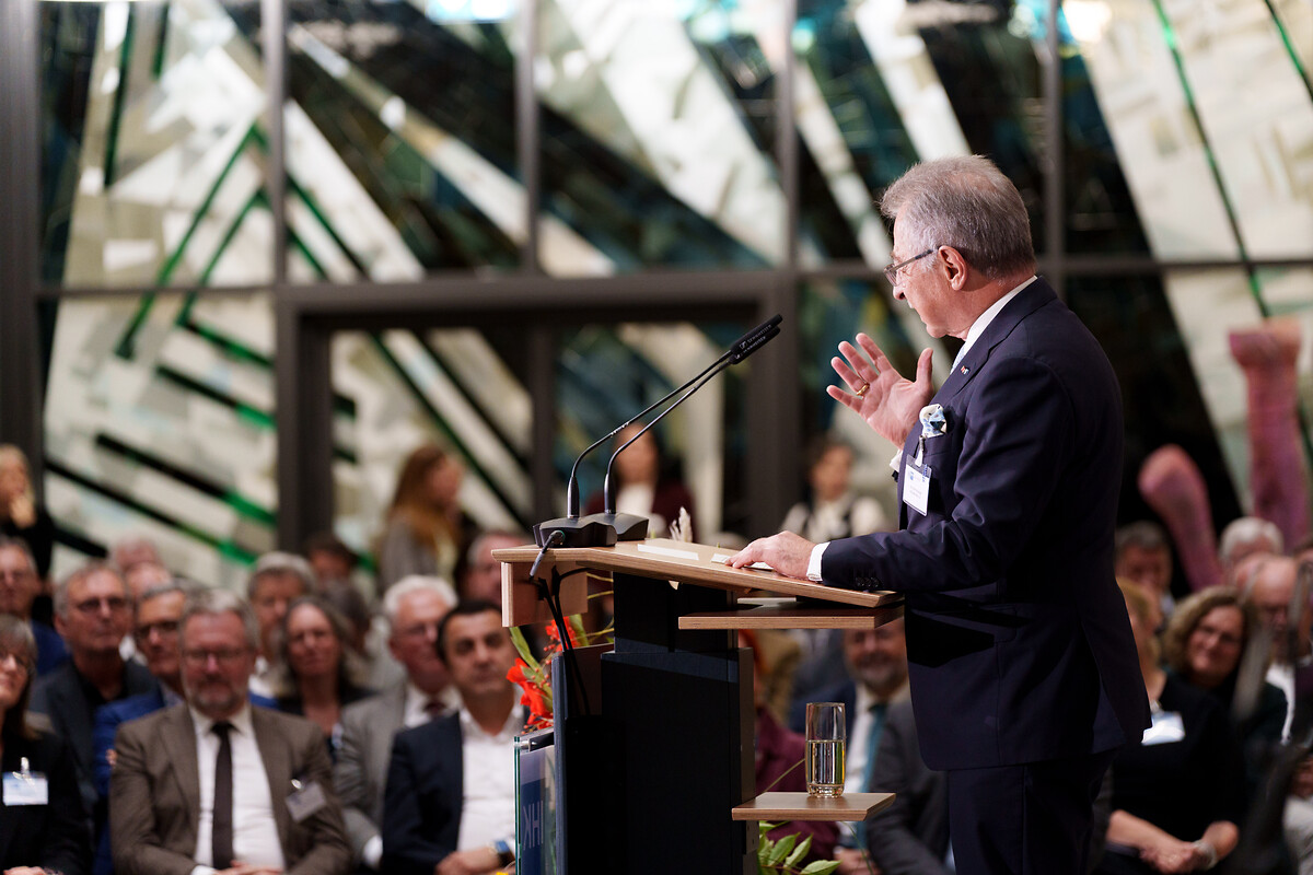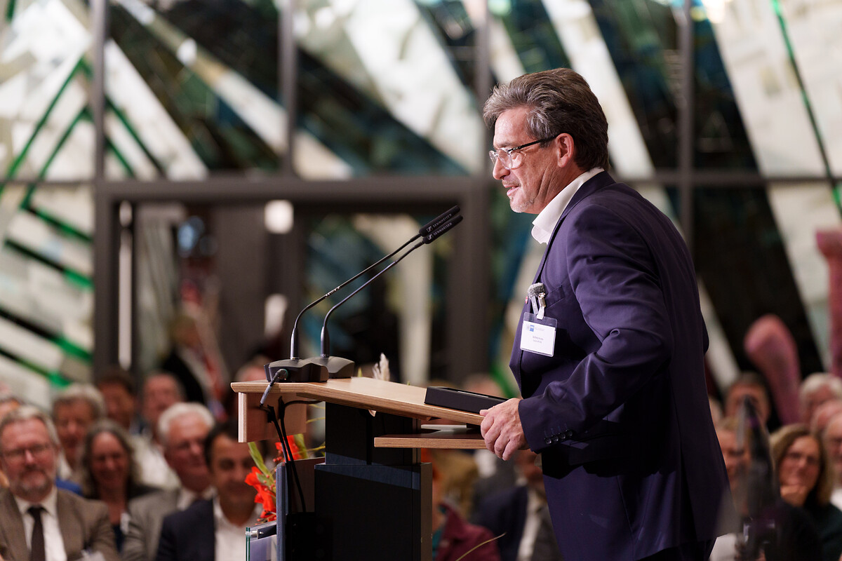 Die Laudatio hielt Prof. Dieter Kempf, ehemaliger Präsident des Bundesverbands der Deutschen Industrie (BDI). Er betonte die besondere Verbindung von Innovationskraft, Verantwortungsbewusstsein und Menschlichkeit, die Krebs und sein Unternehmen prägen.