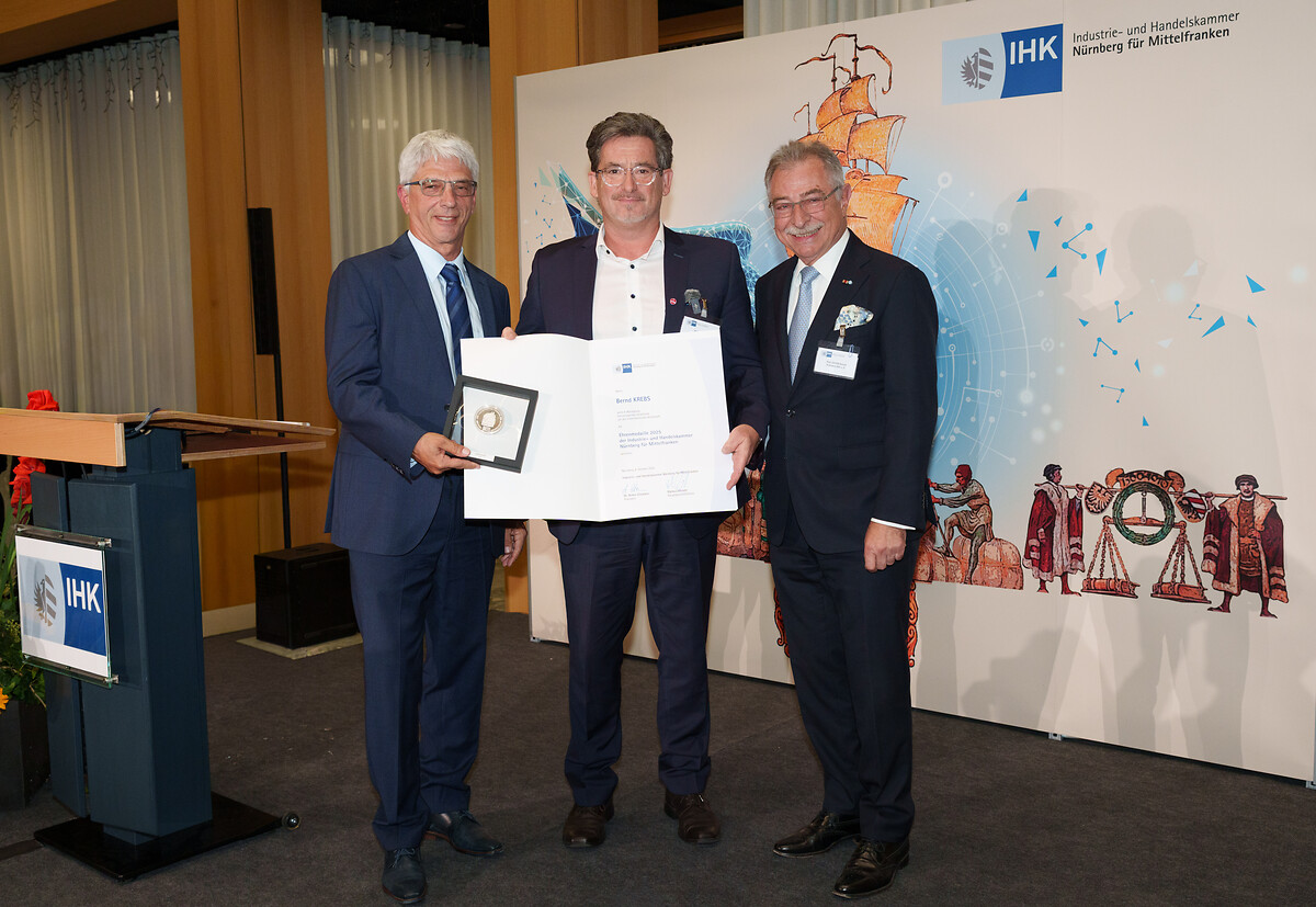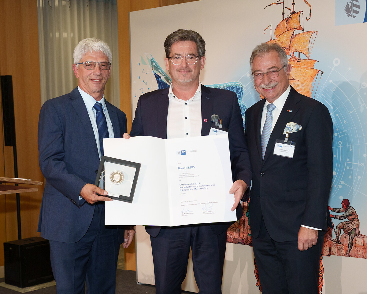 Beim IHK-Jahresempfang „Politik | Wirtschaft“ am 9. Oktober 2025 im Atrium unserer IHK wurde Bernd Krebs, Gründer und Geschäftsführer von der toolcraft AG in Georgensgmünd, mit der Ehrenmedaille der IHK ausgezeichnet. Die Ehrenmedaille ist die höchste Auszeichnung der IHK und würdigt seine unternehmerischen Erfolge, seinen Innovationsgeist und sein starkes Engagement für die Region Mittelfranken.