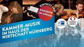 Bei der Veranstaltungsreihe „Kammer-Musik“ geben Studierende der Hochschule für Musik Nürnberg im „Haus der Wirtschaft“ kostenlose Konzerte. Dabei sammeln wir Spenden für wohltätige Zwecke.
