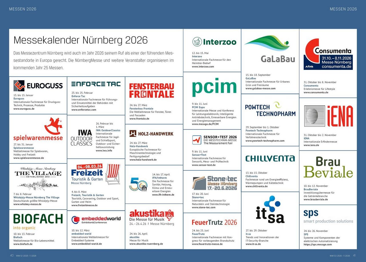 Entdecken Sie im aktuellen Messekalender alle Highlights der rund 30 Veranstaltungen, die das Messezentrum Nürnberg 2026 ausrichtet!