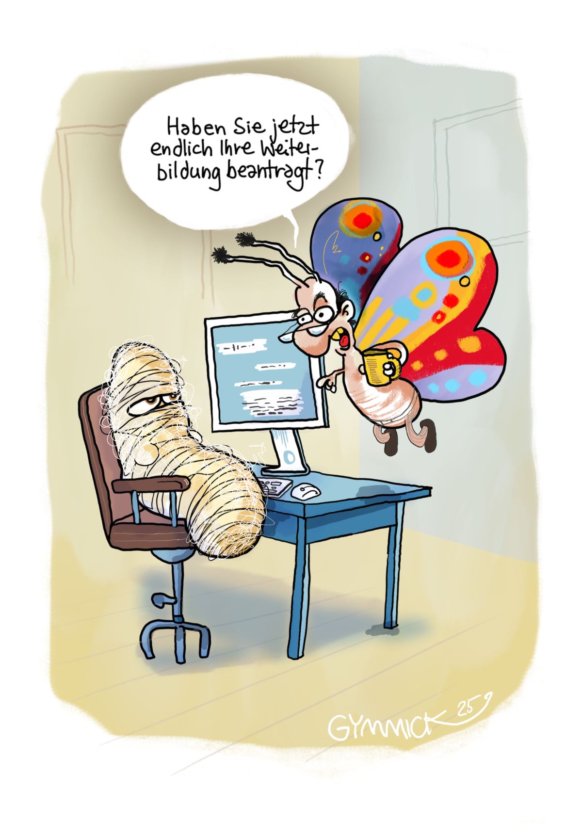 Seit März 2018 zeichnet Tobias Hacker alias Gymmick für die Cartoons in der "WiM" verantwortlich – im wahrsten Sinne des Wortes. Tobias Hacker ist aufgewachsen in Nürnberg-Worzeldorf und ist neben seinen Cartoons und Bildern als Sänger, Schauspieler und Kabarettist unterwegs.